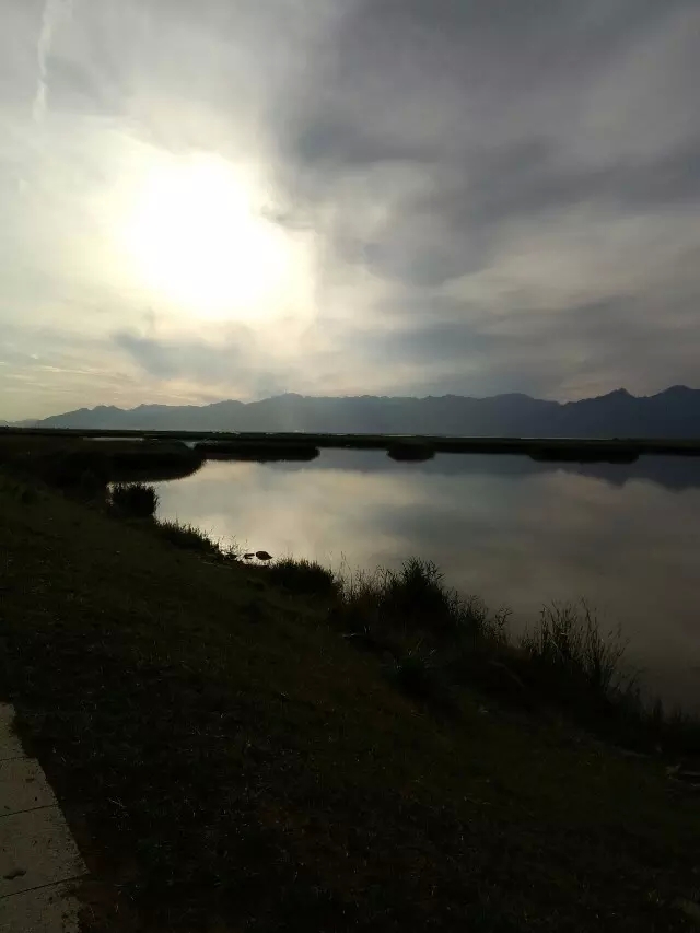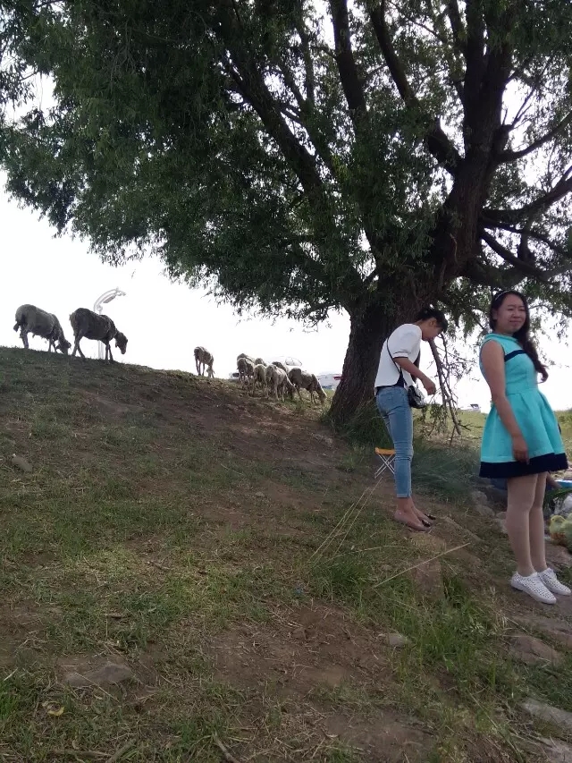 哈素海位于呼和浩特西70公里的土默特左旗境內,哈素為蒙古譯音。原名哈拉烏素,意為青水湖,由青色湖水得名。我們是自己駕車前往,進入景區(qū)內,視野一下就開闊了。湖面碧綠,偶爾泛起的漣漪閃爍著點點亮光。湖的北為大青山,東、南、西三面被農(nóng)田和牧場所包圍。沿著景區(qū)里的公路一直往南,透過車窗就看到遠處水草相連,藍綠相接,陽光下,遠處相接的地方層層薄薄的霧氣。湖面吹過的風兒濕濕的、涼涼的。整個人都輕松好多。我們一行人直接把車開到湖南邊的一顆大樹下,準備在這開始野餐活動。
