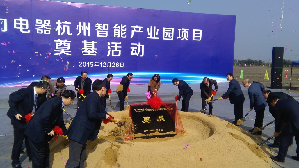 2015年11月11日,格力電器與杭州大江東管委會正式簽署項目投資協(xié)議書,正式達(dá)成合作協(xié)議。僅僅45天之后,格力電器杭州智能電器產(chǎn)業(yè)園項目奠基儀式舉行,創(chuàng)造了新的“大江東速度”。